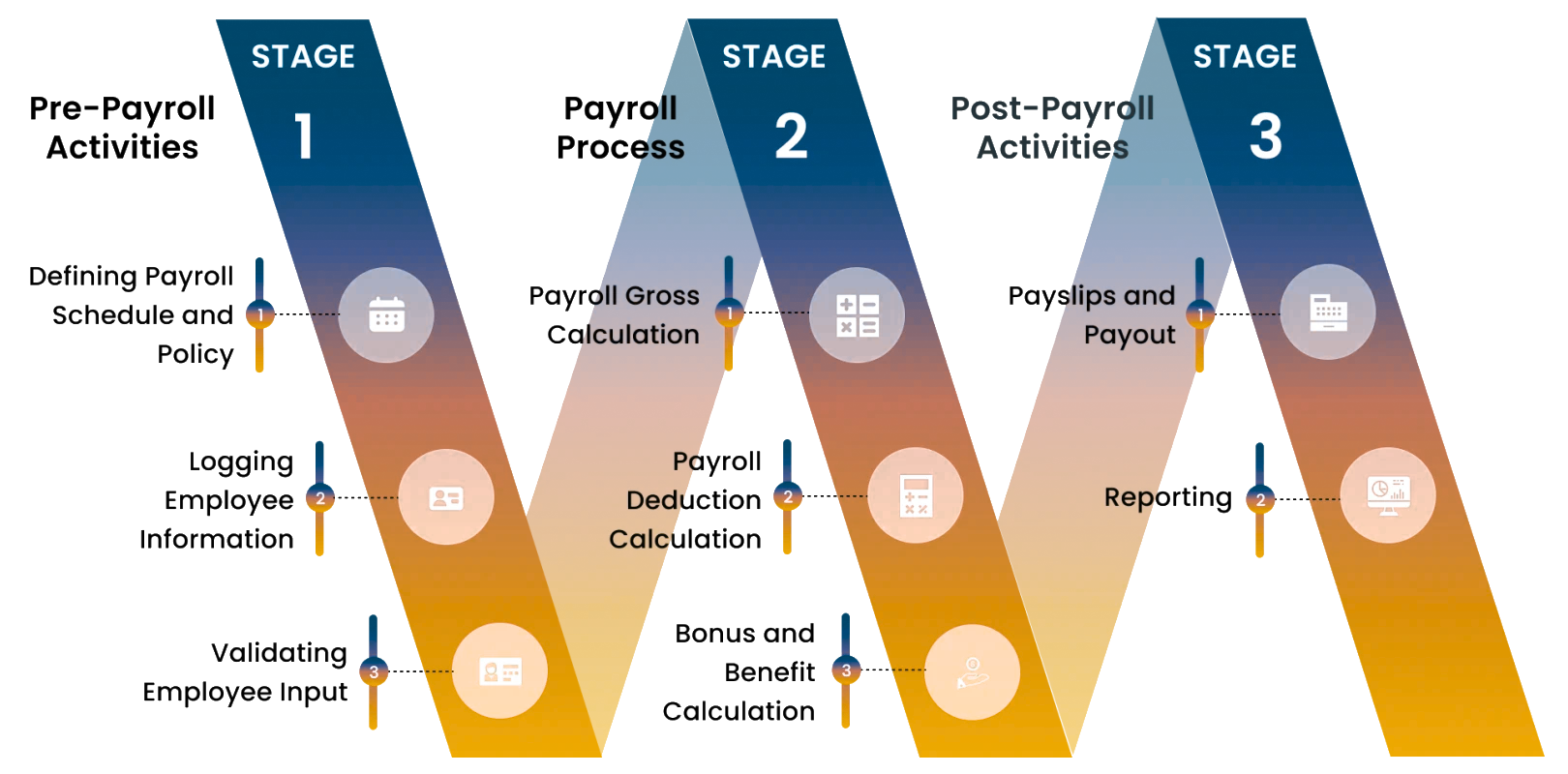 Take a look at the key activities involved in Payroll Management outsourcing service:We begin by setting up payroll parameters, including employee profiles, salary structures, tax details, and payment schedules to match your business needs.